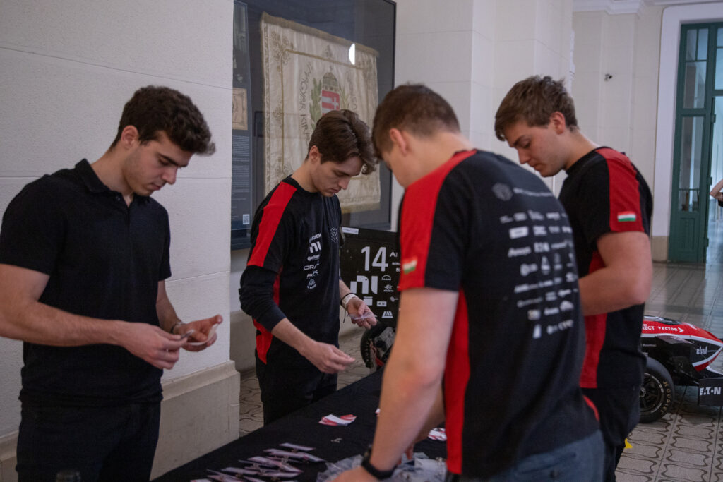 Az esemény a BME K épületének dísztermében került megrendezésre, ahol a vendégeink fogadását követően csapatkapitányunk, Pálfi Mátyás röviden ismertette a Formula Student koncepcióját és annak jelentőségét.